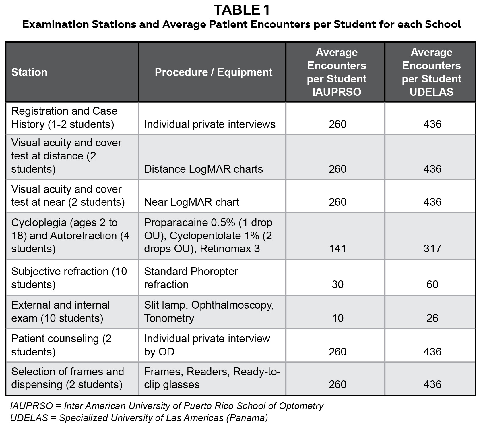 Table 1: Examination Stations and Average Patient Encounters per Student for each School. Click to enlarge
