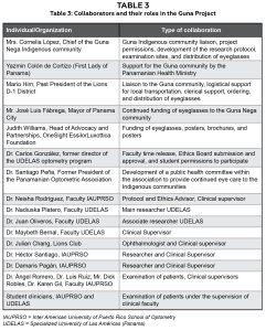 Table 3: Collaborators and their roles in the Guna Project. Click to enlarge