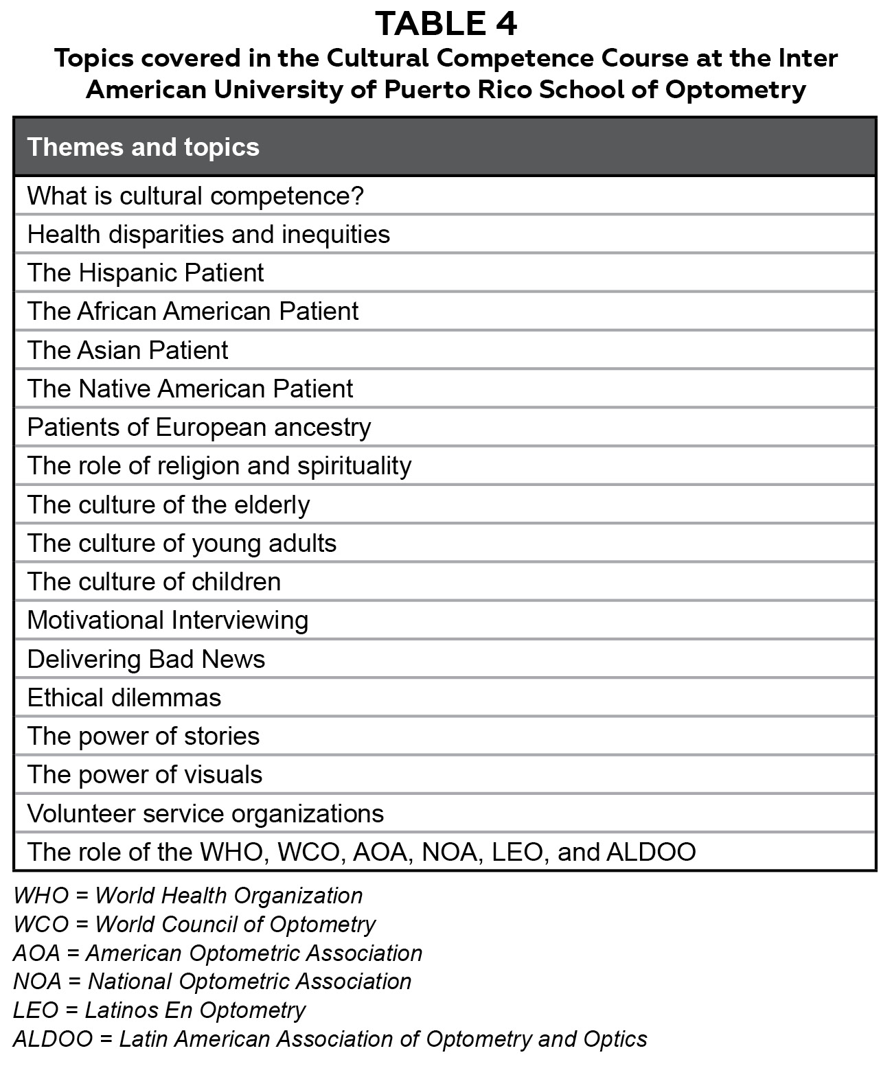 Table 4: Topics covered in the Cultural Competence course at IAUPRSO. Click to enlarge