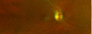 Given the patient’s decreased vision and onset of metamorphopsia without any other correlating ocular or retinal abnormality, the cause was presumed to be related to the progression of subretinal deposits. Given the OCT results and lack of drusen-like findings or family history, the presumptive diagnosis was bilateral AOFVD. The patient was referred to a local retina specialist for further evaluation, including possible FA and/or FAF, and was given an Amsler grid for home monitoring. He has not yet gone to see the retina specialist.