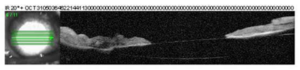 ![]() Figure 3b. Anterior segment OCT of the left eye on day 13: No interaction between the PCIOL and the posterior iris. |