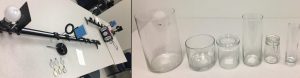 ![]() Figure 1. Left: This station demonstrated relationships between object and image distances, cylindrical lens orientation and image orientation. Right: This station used vases of various sizes filled with water to demonstrate relationships between index of refraction and curvature. Click to enlarge |