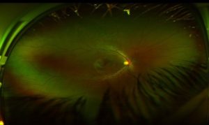 Commotio retinae is acute retinopathy resulting from blunt trauma to the globe. Commonly seen as whitening of the deep sensory retina, it has been recognized histologically as a disruption of the photoreceptor outer segment and damage to the retinal pigment epithelium (RPE).1,2 Commotio retinae has also been referred to as “Berlin’s edema” as it was originally theorized that the discoloration was caused by extracellular edema. However, since that time many studies have disproven this hypothesis.2,3 Differentials include other traumatic retinal conditions such as choroidal rupture, Purtscher retinopathy, traumatic macular hole, chorioretinitis sclopetaria, and retinal detachment. Non-traumatic differentials include conditions that present with a similar whitening as seen in ischemic retinal conditions such as retinal artery occlusions (RAOs).