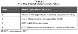 Table 1. Four-step grading system for morphological features of commotio retinae seen on SD-OCT as determined by Ahn et al.6 Click to enlarge