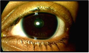 Figure 2a. Follow-up #1, 3 months after initial presentation, OD, anterior segment photo. Click to enlarge