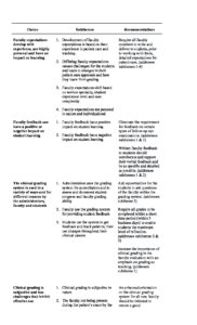 One of the goals of this study was to make recommendations to the administration for potential changes to improve the functionality and impact on learning of the clinical grading system at SCO. Based on the three interviews and two focus groups, the following recommendations should be considered and are linked back to the results of the study themes and subthemes in Table 2: