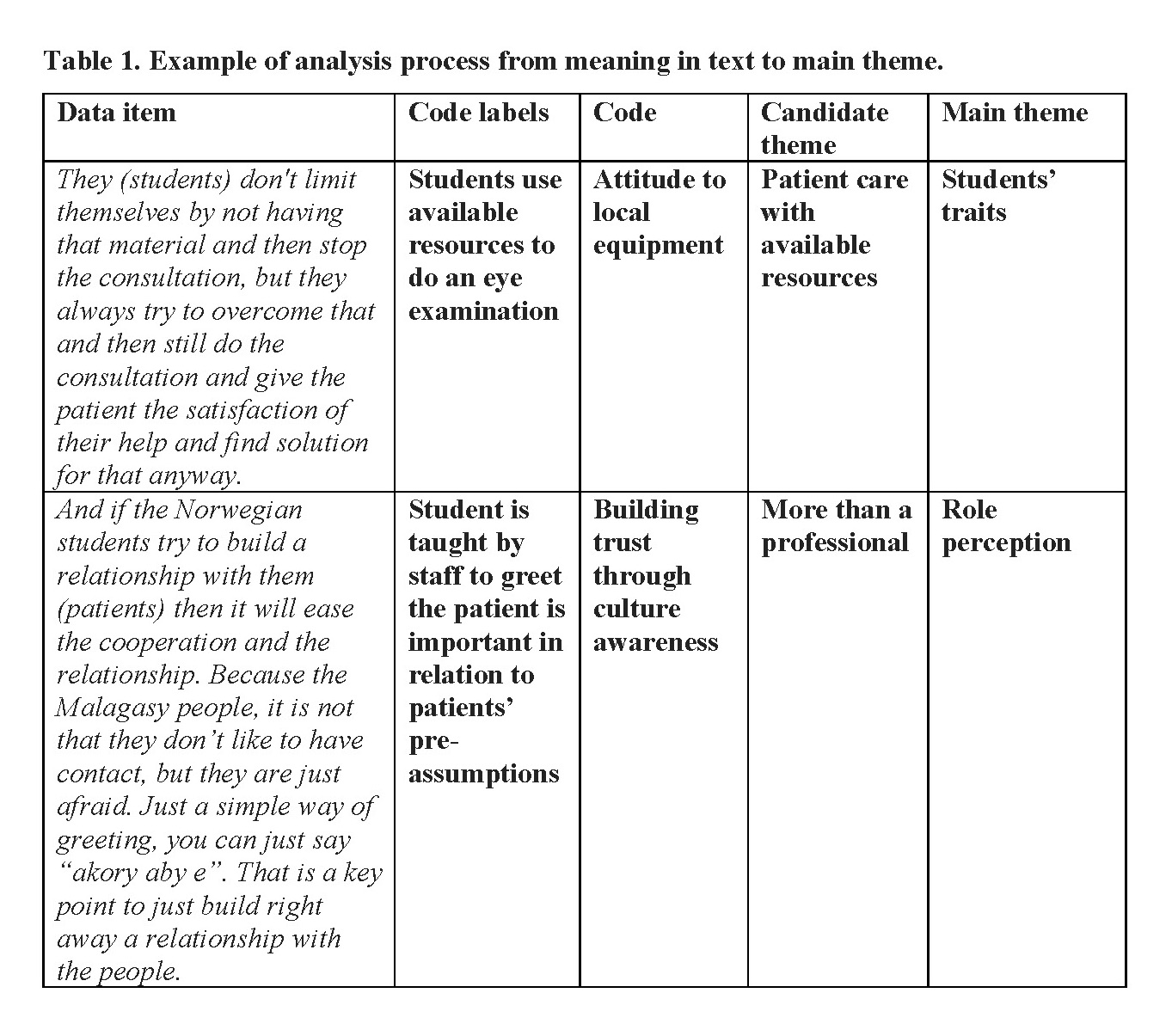 Table 1. Example of analysis process from meaning in text to main theme. Click to enlarge