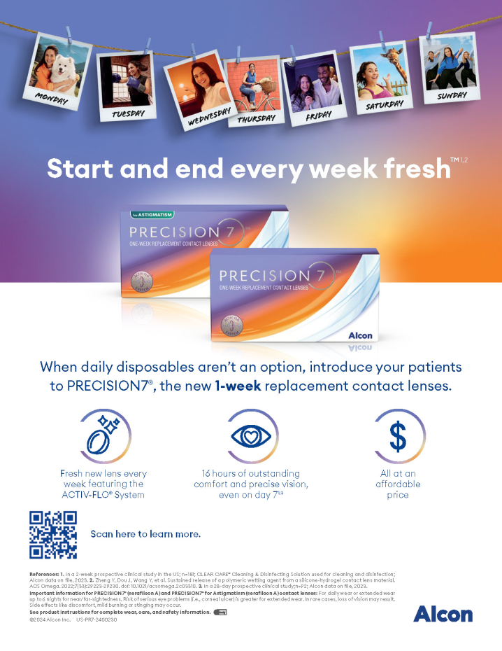 Because the patient’s vision was correctable to 20/20 in each eye, recommendations for treatment to control her fluctuating blurry vision were progressive addition lenses for full-time wear and tear supplements as needed. This presentation represents a typical EBMD clinical scenario.