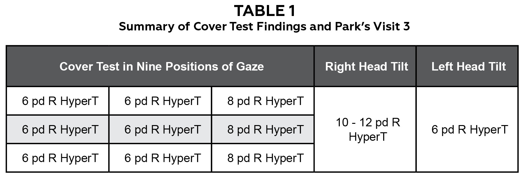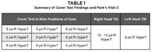 Table 1. Summary of Cover Test Findings and Park’s Visit 3. Click to enlarge