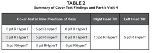 Table 2. Summary of Cover Test Findings and Park’s Visit 4. Click to enlarge