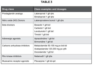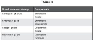 Because Patient AB’s intraocular pressure remained above the target intraocular pressure despite his reported adherence with Travatan-Z, the addition of a topical beta-blocker, such as Timolol 2 times per day in both eyes, to the patient’s medication regimen was also considered. However, the patient was on an oral beta-blocker so Alphagan-P 2 times per day in both eyes was added to the patient’s regimen. The importance of treatment, adherence and regular follow-up were emphasized. The benefits and side effects of both medications were reviewed, and follow-up was scheduled in 1 to 2 months for an intraocular pressure check. The patient was encouraged to use his artificial tears at least 4 times per day in both eyes for relief of his symptoms from dry eye disease. Patient AB was also given the dosing schedule for each of his three eye drops on the back of a business card.
