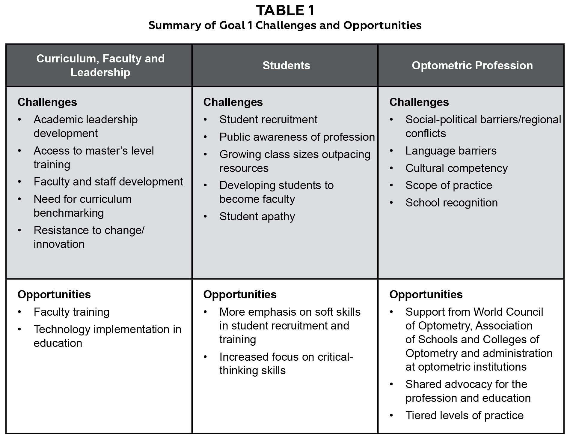 Goal 1: Assemble representatives from optometric academic institutions around the world and identify issues facing optometric education globally
