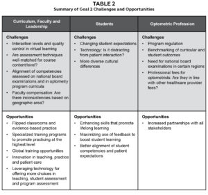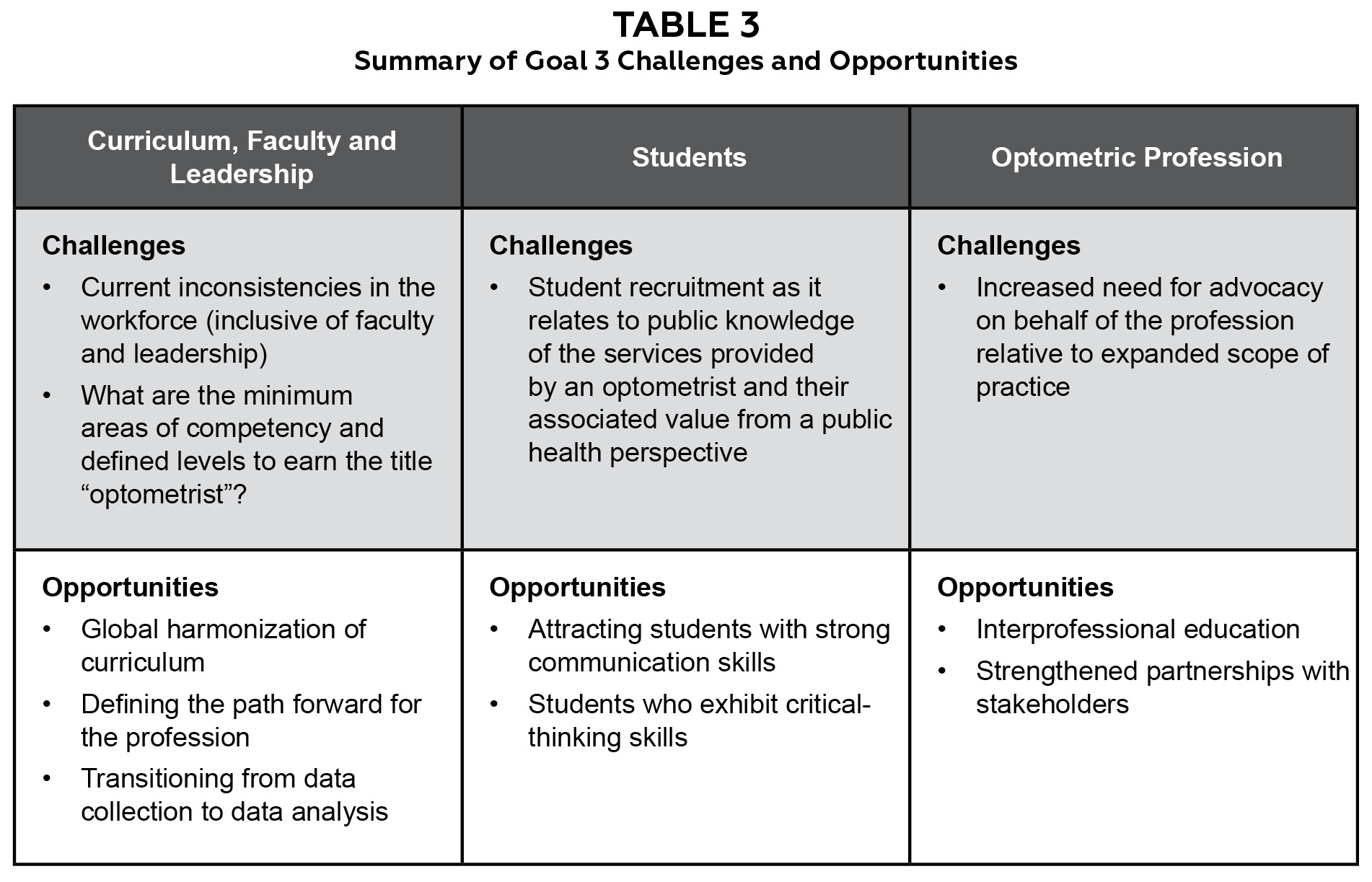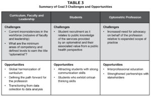 In alignment with Goal 3, the following challenge was identified relative to optometry as a profession: