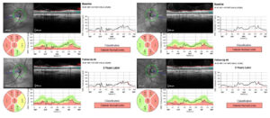 Case 2: The RNFL is significantly reduced superiorly in both eyes. The thinning also affects all sectors except for the inferonasal sector. Contrary to some studies, thinning is also present in the inferotemporal region. This raises suspicion for concomitant glaucoma, especially given their ocular hypertension. (Image 4)