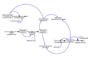 System dynamics modeling has been used to forecast workforce needs in medicine, dentistry, pharmacy and social care in England, nursing in Korea and dentistry in the United States.14-16 System dynamics has also been used to develop scientific, social, business and political models.17 More recently, it has been applied to public health planning.18–19 In education, it is a useful tool to promote deeper learning and critical-thinking skills among students.20