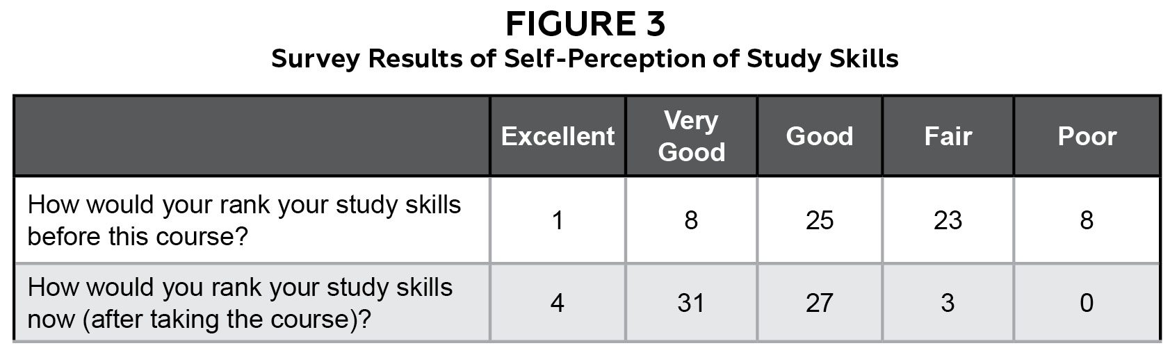 Figure 3. Survey Results of Self-Perception of Study Skills. Click to enlarge